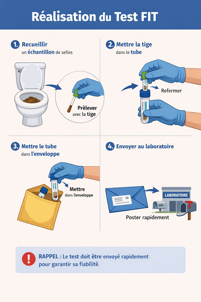 - Le dépistage par test FIT est simple et efficace,